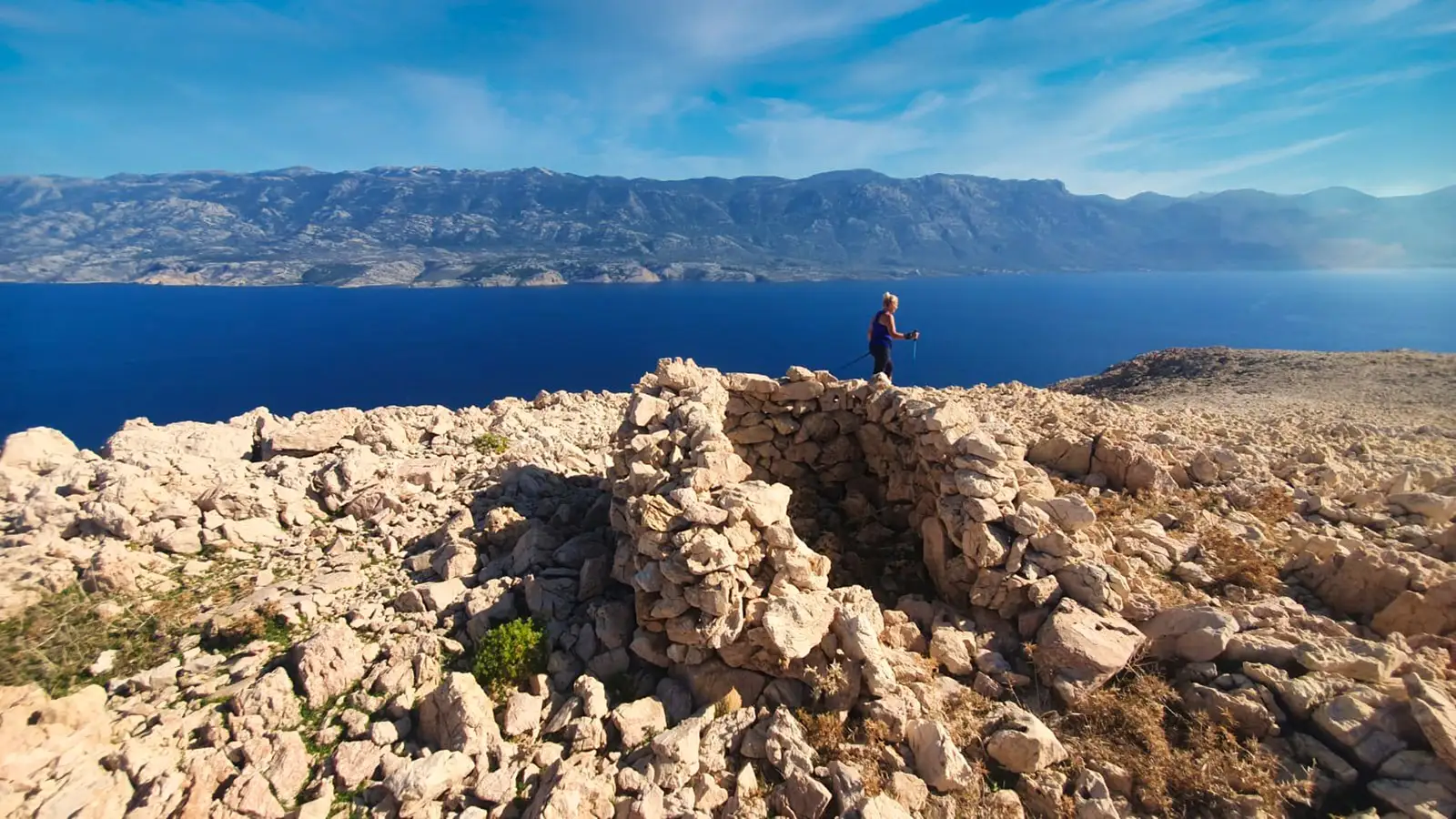 Nach ca. 6 km erreicht man die Bucht Vela Luka, eine der schönsten Buchten des Velebit-Kanals, die zu einer Pause und einem Bad im kristallklaren Meer einlädt. Ab hier wird der Weg deutlich zugänglicher – die nächsten 3,5 km verlaufen über leichtes, gut begehbares Gelände, ideal für Spaziergänger, Familien mit Kindern sowie für Läufer und Wanderer, die eine aktivere, aber leichtere Fortsetzung bevorzugen.